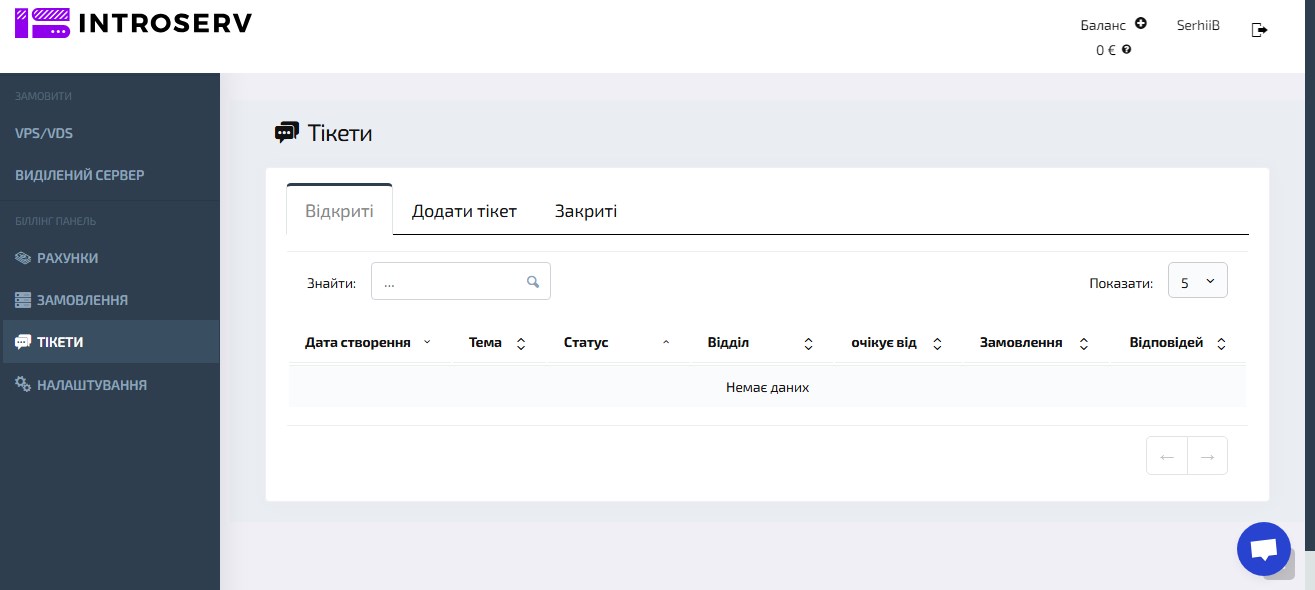 У розділі «Тікети» ви можете створювати та відстежувати звернення до технічної підтримки.